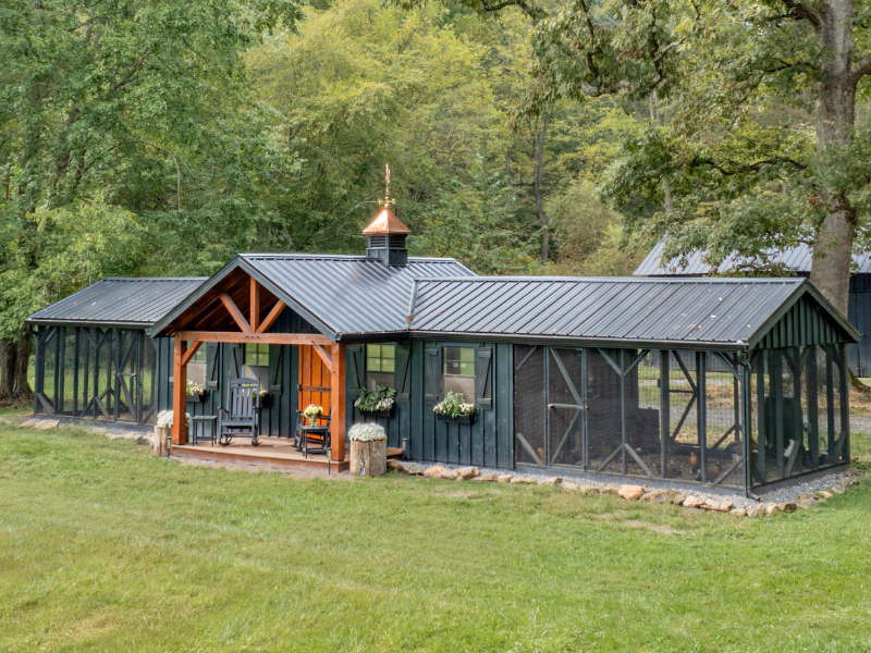 Home » Products » Animal Shelters » Chicken Coops » A-Frame Reverse Gable Double Combo Chicken Coop w/Porch